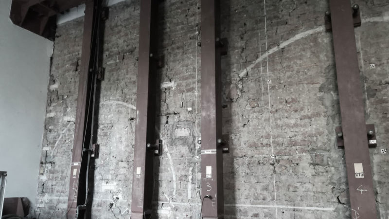 Structural monitoring of the Cenacolo Vinciano wall and adjacent structures.