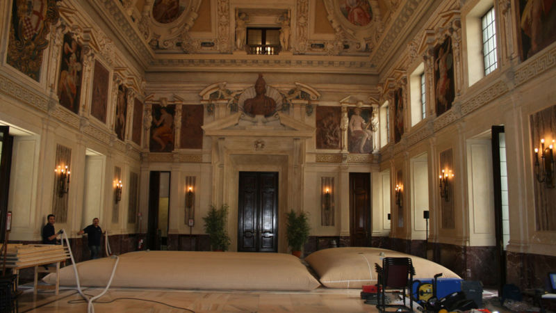 On the occasion of the celebrations for the twentieth anniversary of the Dolce & Gabbana fashion house in some rooms of the historic building, Akron performed static load tests to verify the Sala Alessi (hall of honor of Palazzo Marino) and the Sala Gialla.